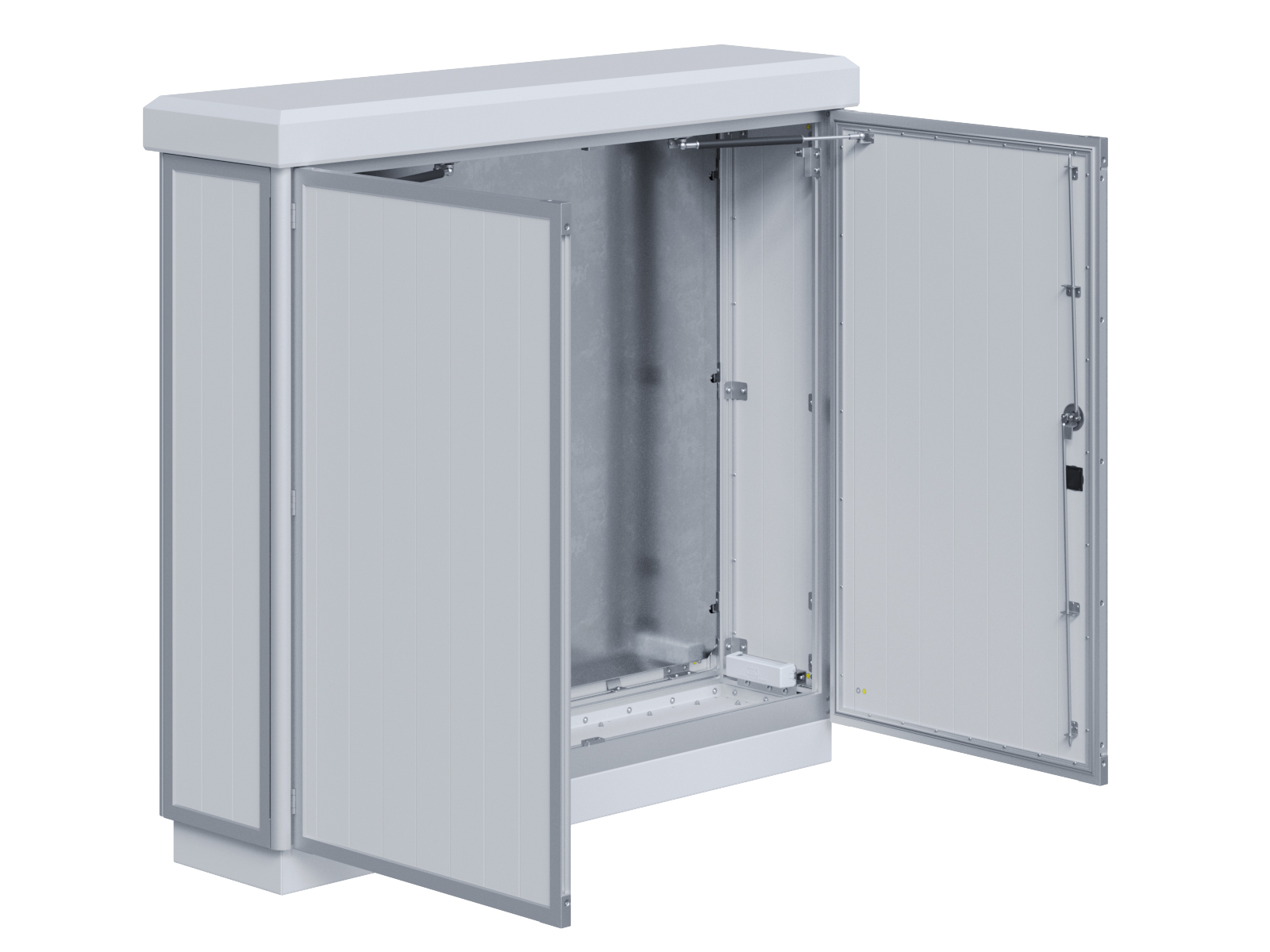 Outdoor-Schaltschrank aus doppelwandigen Aluminiumprofilen mit Schloß-Anschlagtür