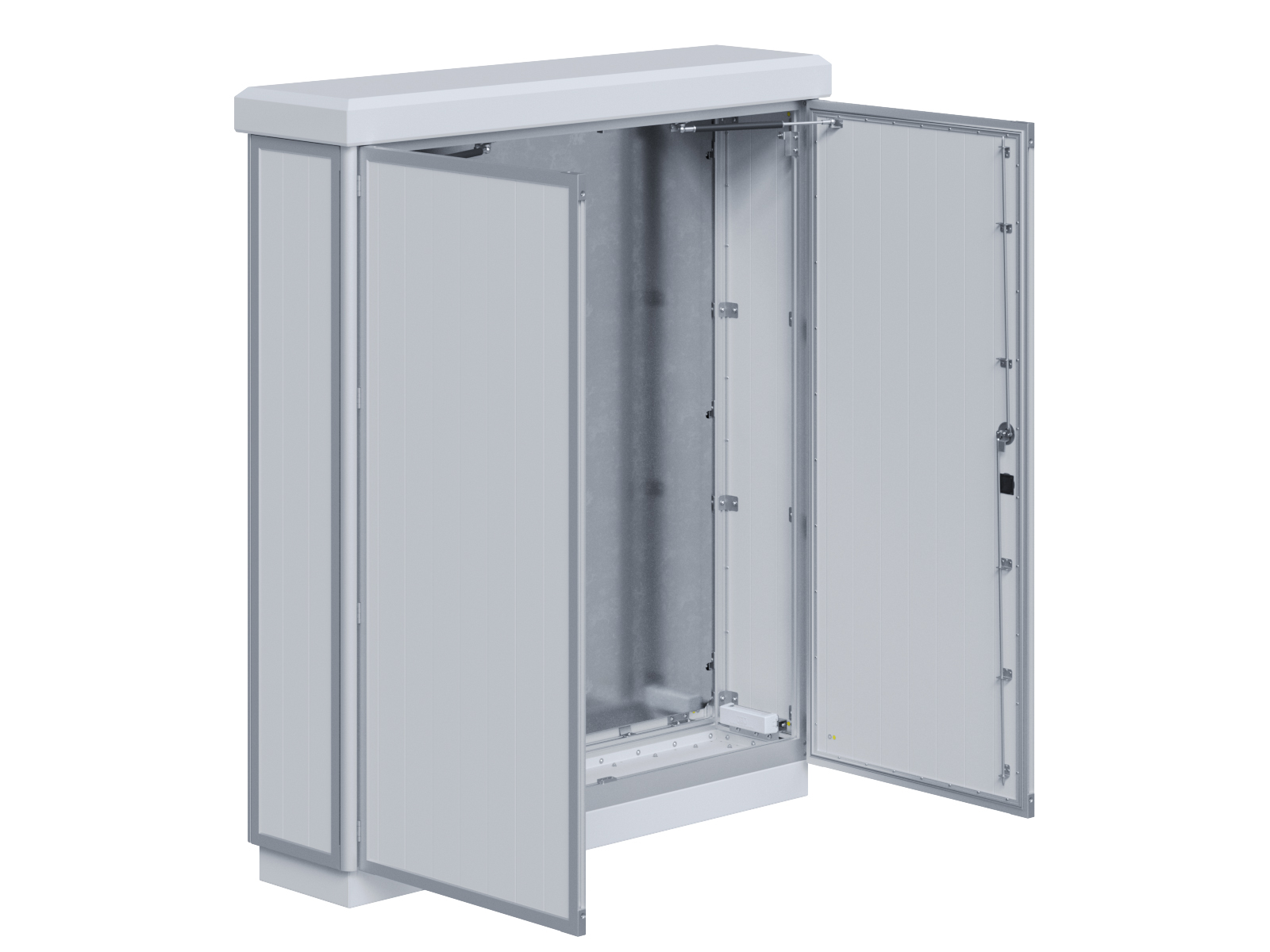 Outdoor-Schaltschrank aus doppelwandigen Aluminiumprofilen mit Schloß-Anschlagtür