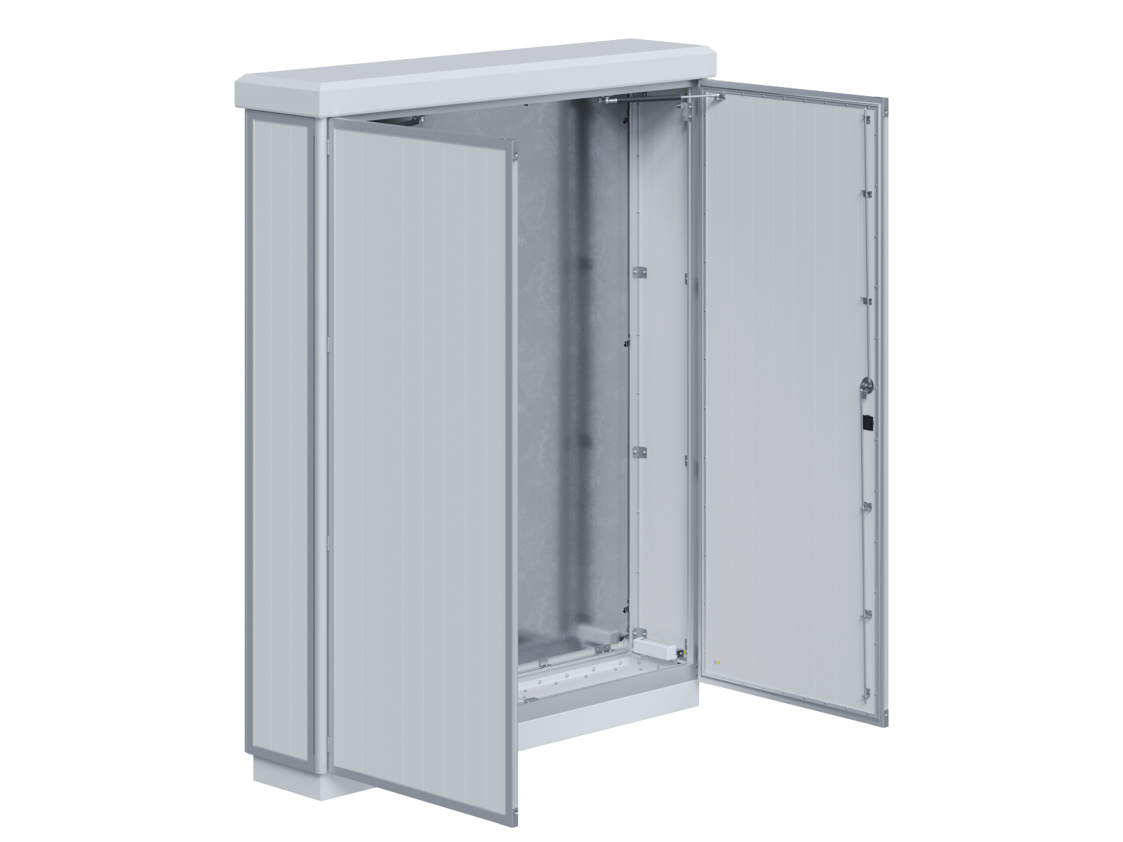 Outdoor-Schaltschrank aus doppelwandigen Aluminiumprofilen mit Schloß-Anschlagtür