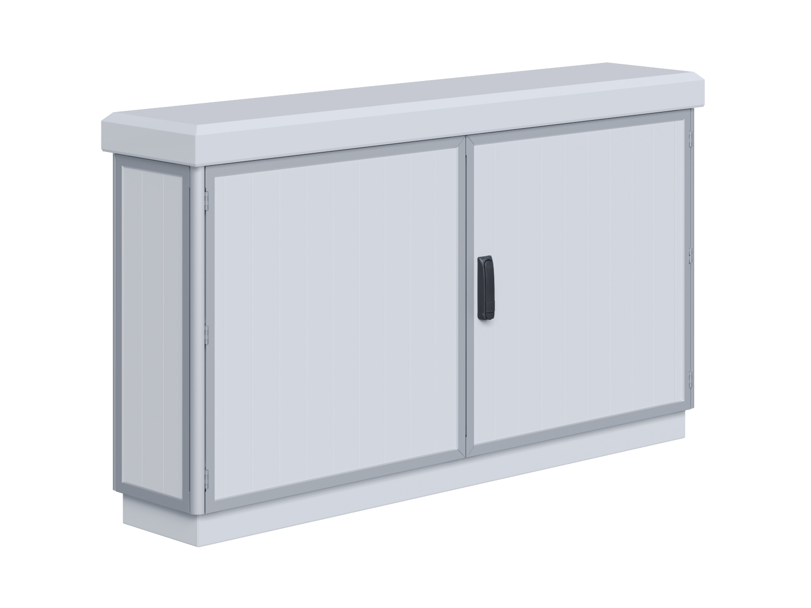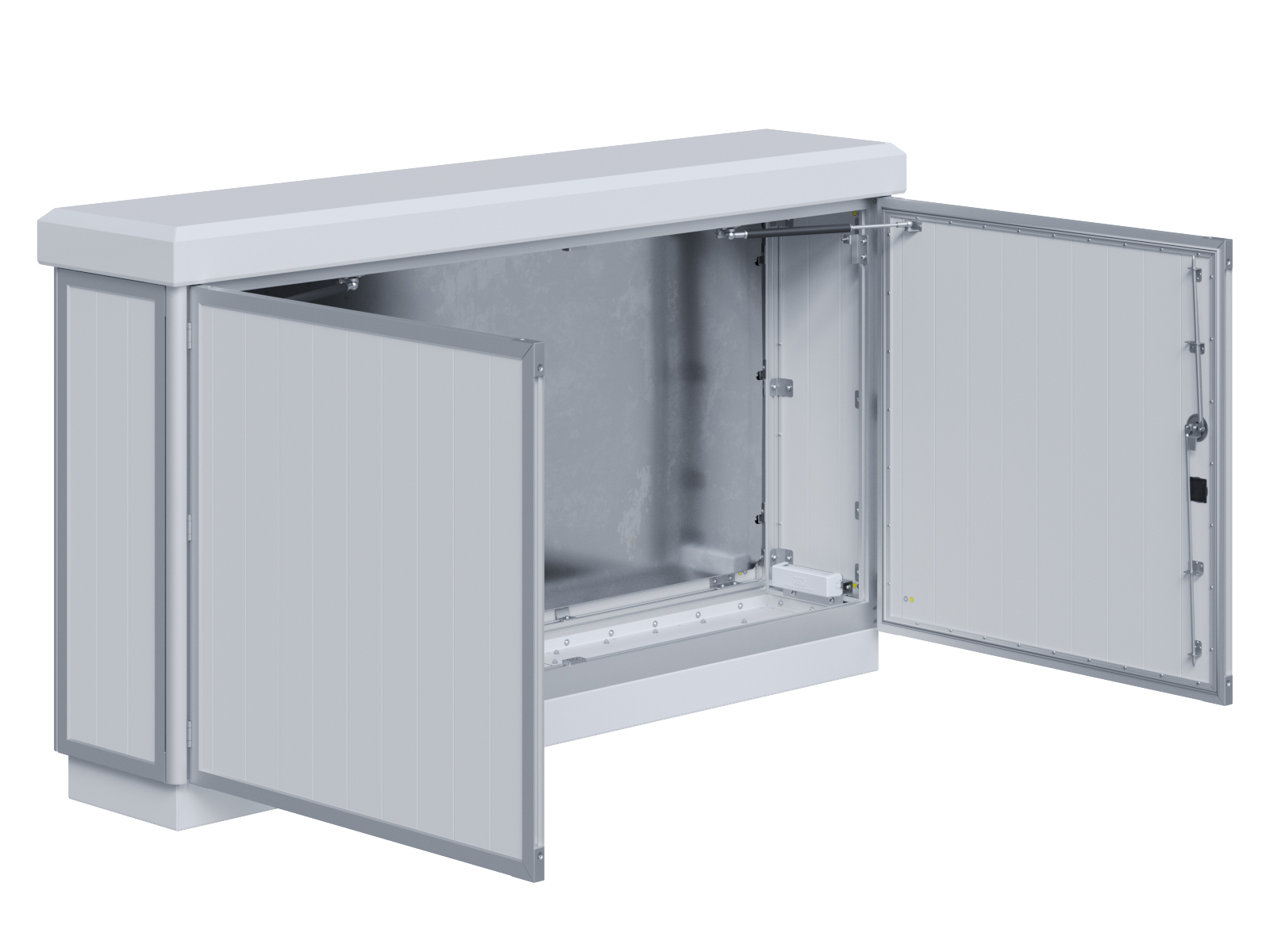 Outdoor-Schaltschrank aus doppelwandigen Aluminiumprofilen mit Schloß-Anschlagtür