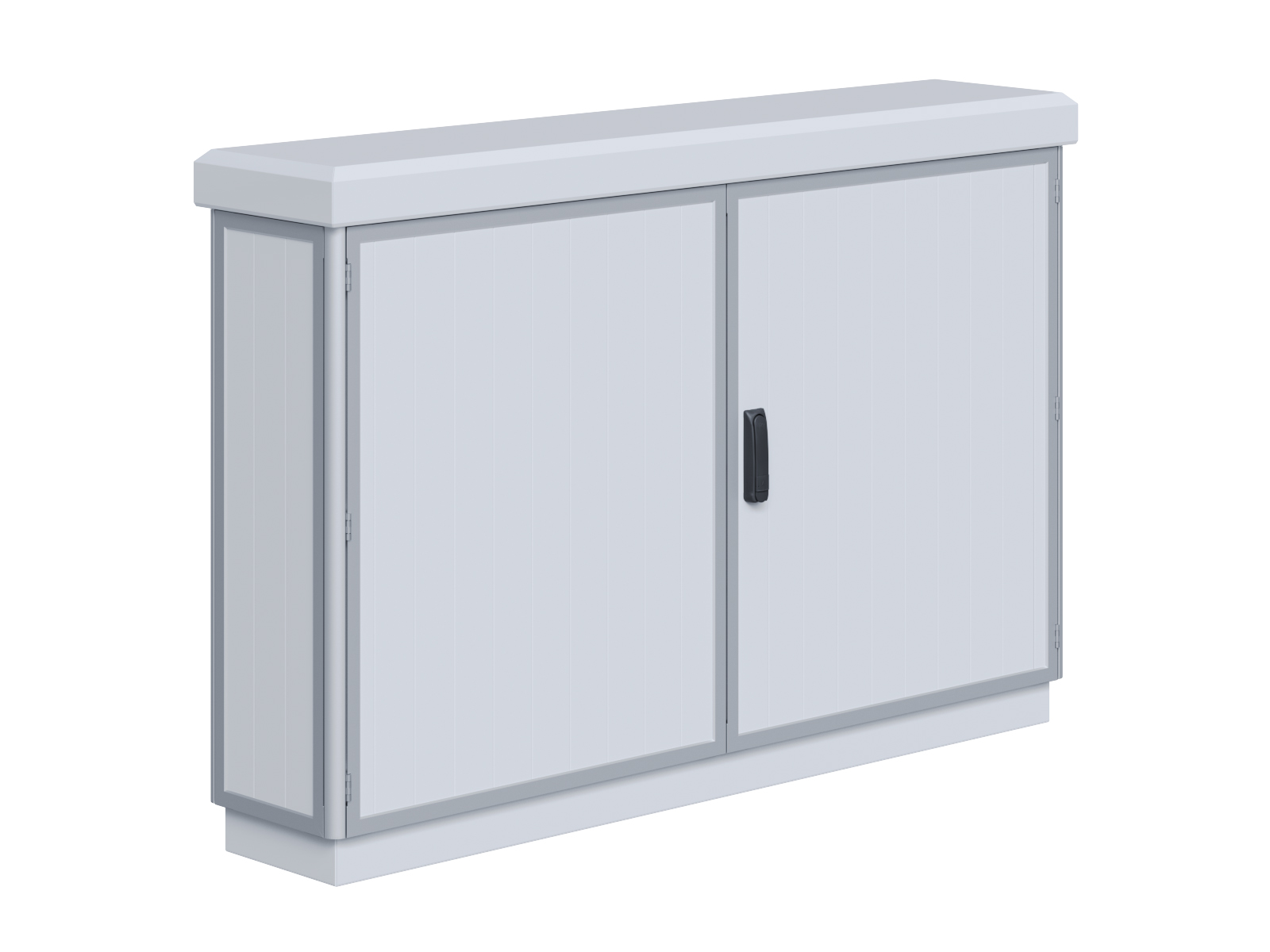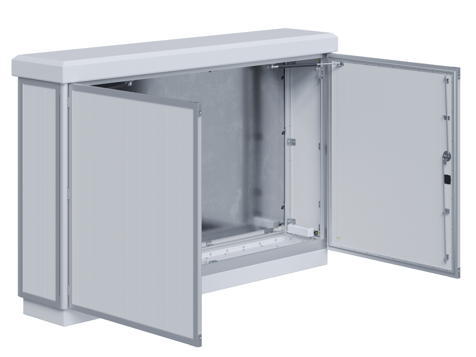 Outdoor-Schaltschrank aus doppelwandigen Aluminiumprofilen mit Schloß-Anschlagtür
