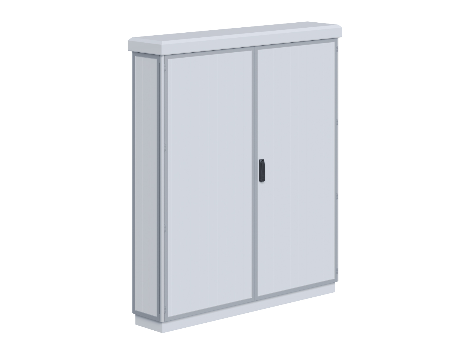Outdoor-Schaltschrank aus doppelwandigen Aluminiumprofilen mit Schloß-Anschlagtür