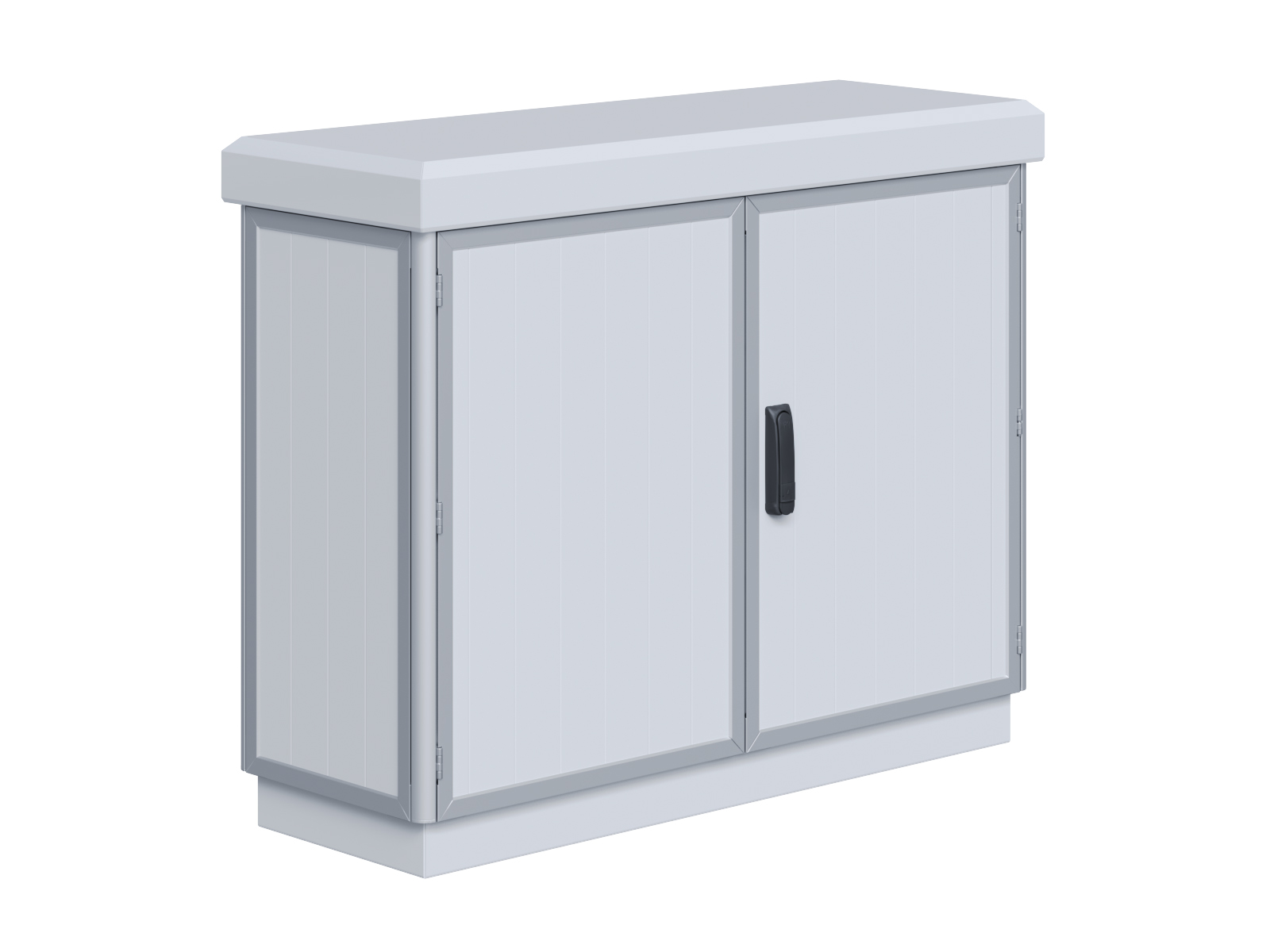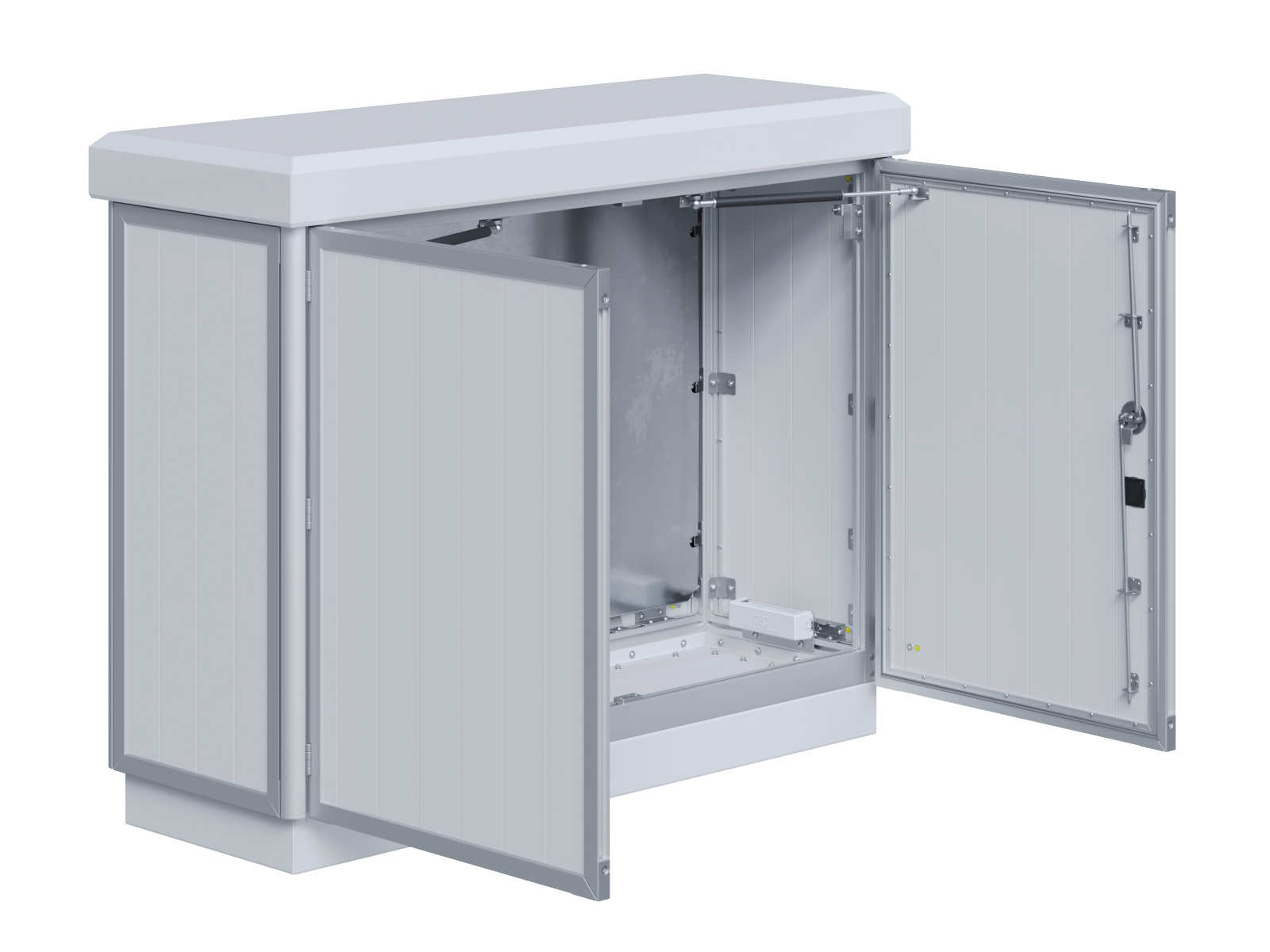 Outdoor-Schaltschrank aus doppelwandigen Aluminiumprofilen mit Schloß-Anschlagtür