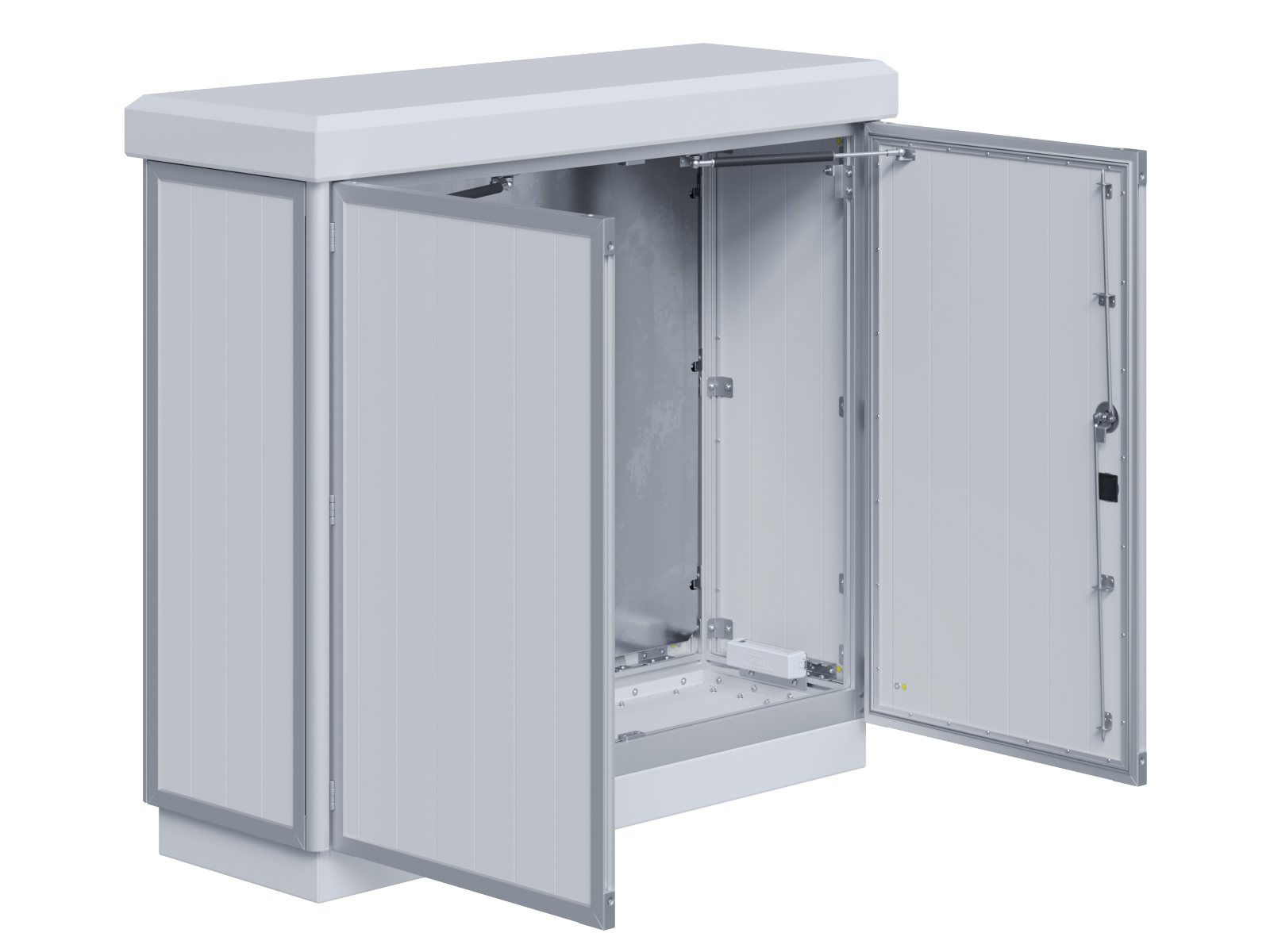 Outdoor-Schaltschrank aus doppelwandigen Aluminiumprofilen mit Schloß-Anschlagtür