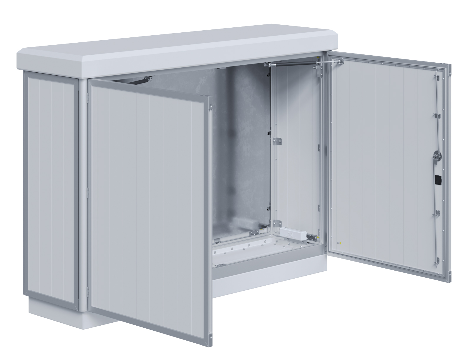 Outdoor-Schaltschrank aus doppelwandigen Aluminiumprofilen mit Schloß-Anschlagtür
