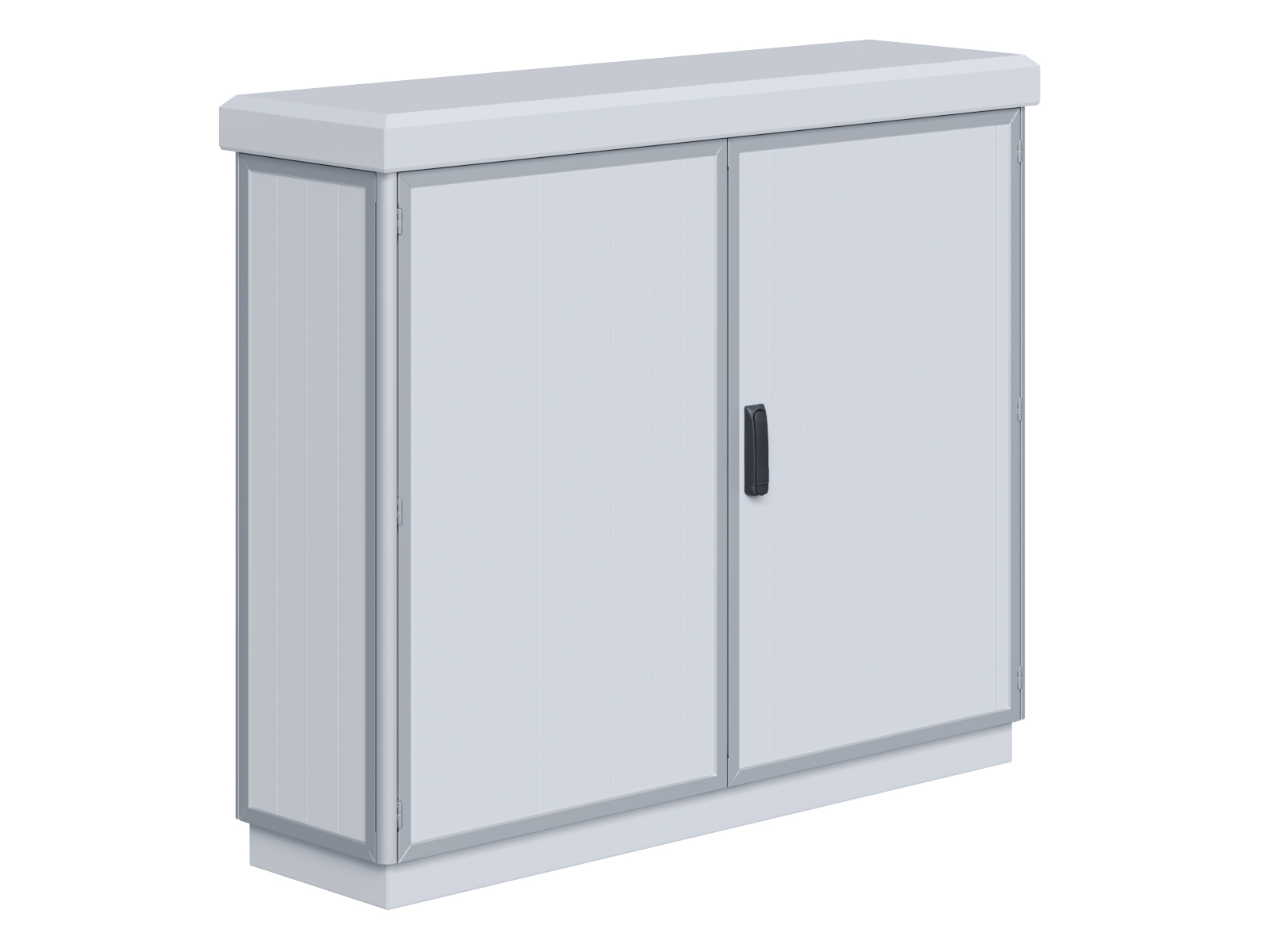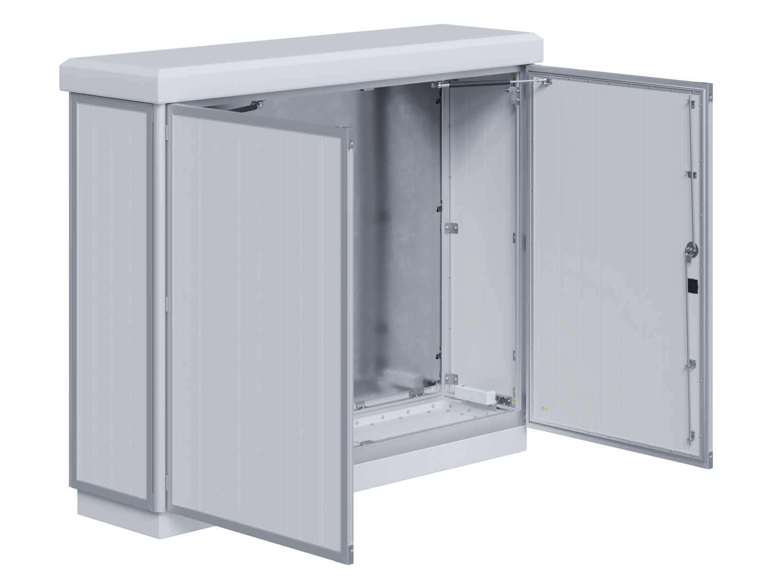 Outdoor-Schaltschrank aus doppelwandigen Aluminiumprofilen mit Schloß-Anschlagtür