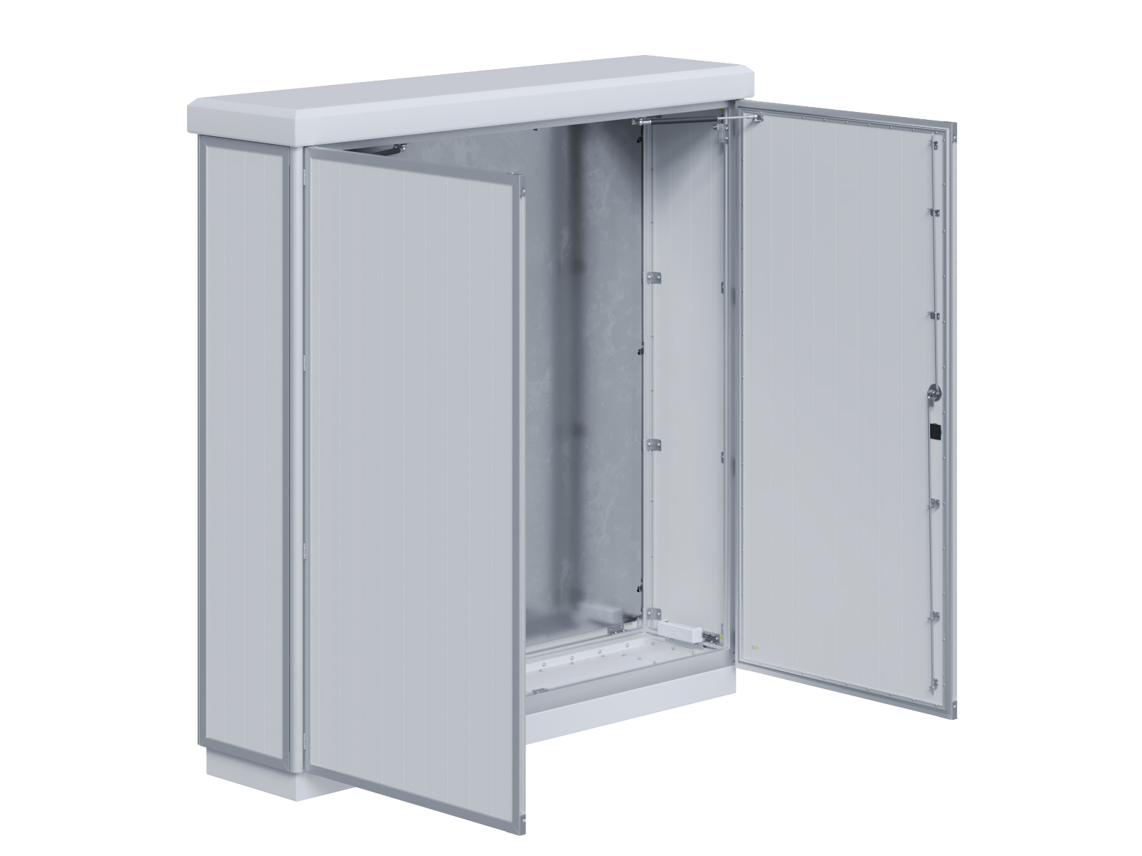Outdoor-Schaltschrank aus doppelwandigen Aluminiumprofilen mit Schloß-Anschlagtür
