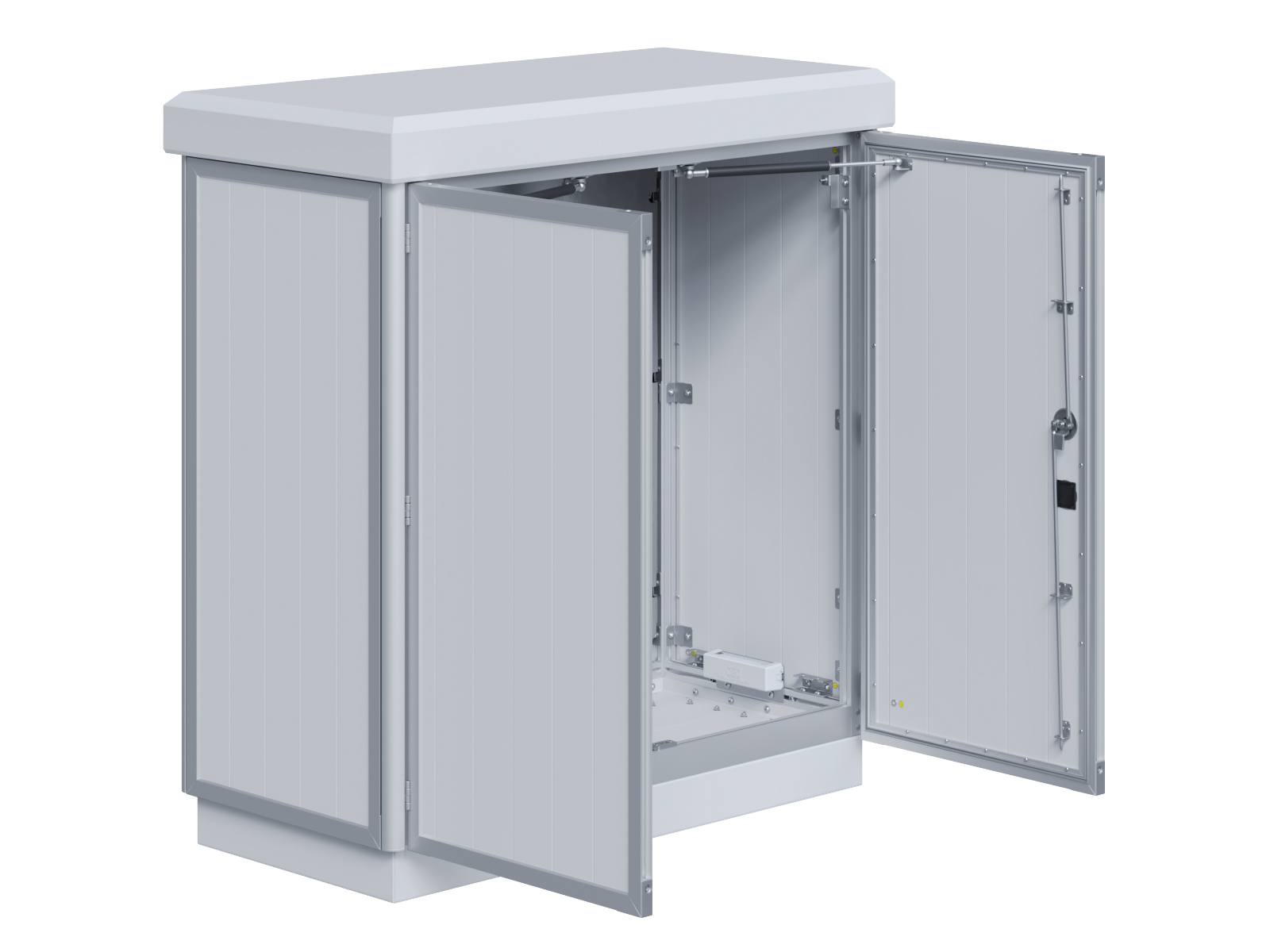 Outdoor-Schaltschrank aus doppelwandigen Aluminiumprofilen mit Schloß-Anschlagtür