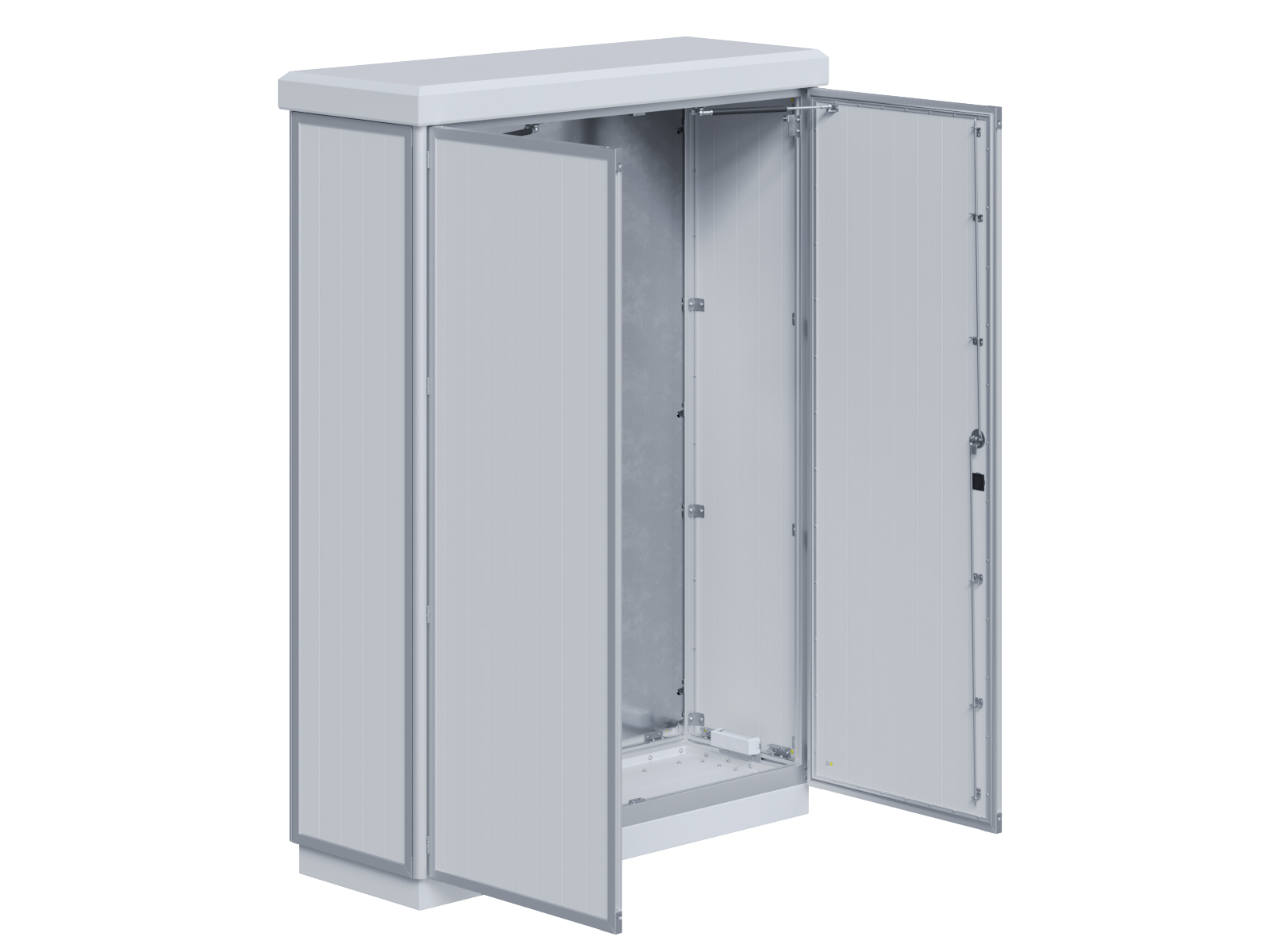 Outdoor-Schaltschrank aus doppelwandigen Aluminiumprofilen mit Schloß-Anschlagtür