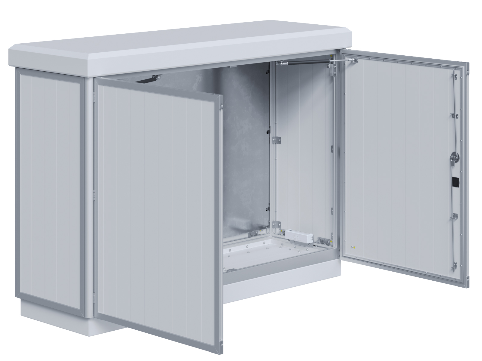 Outdoor-Schaltschrank aus doppelwandigen Aluminiumprofilen mit Schloß-Anschlagtür
