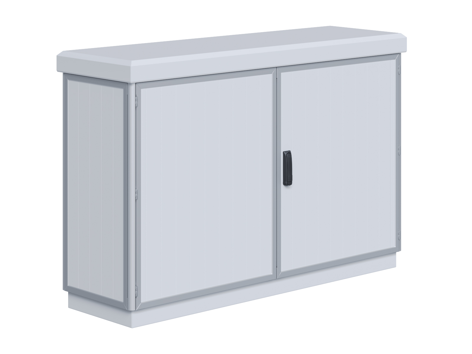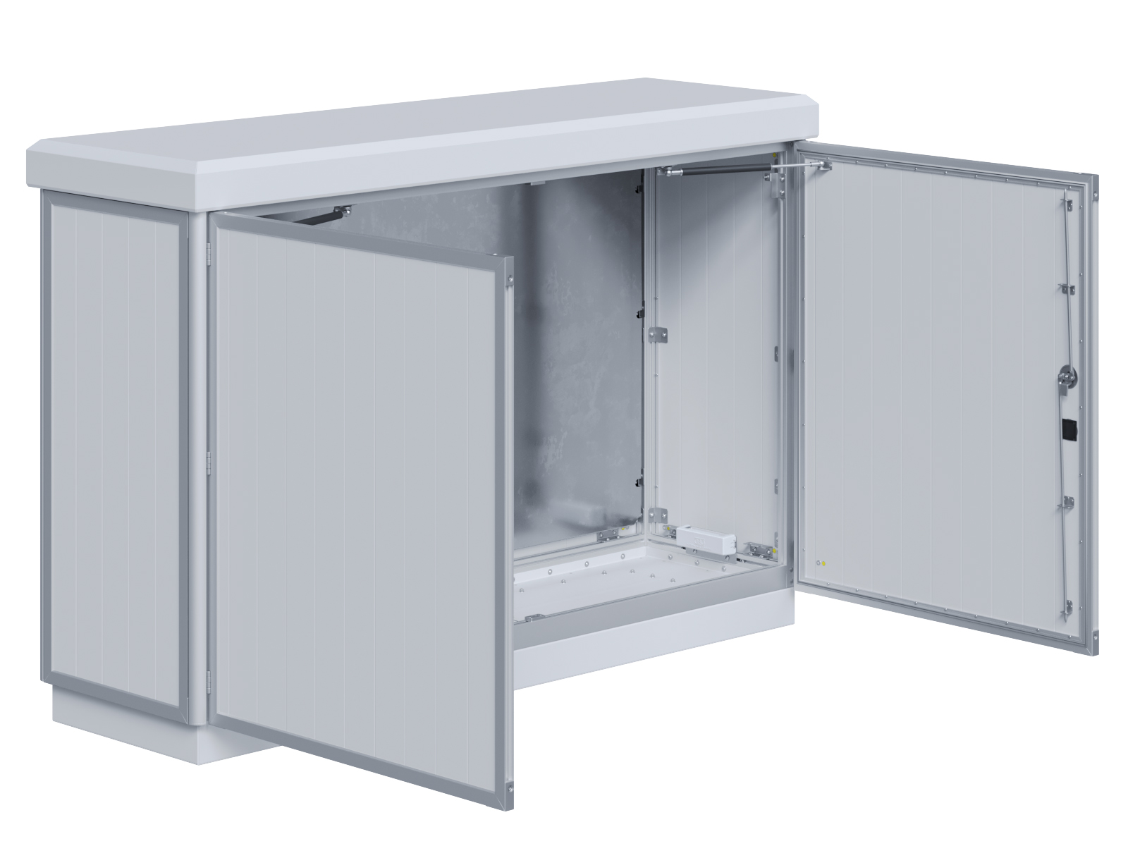 Outdoor-Schaltschrank aus doppelwandigen Aluminiumprofilen mit Schloß-Anschlagtür