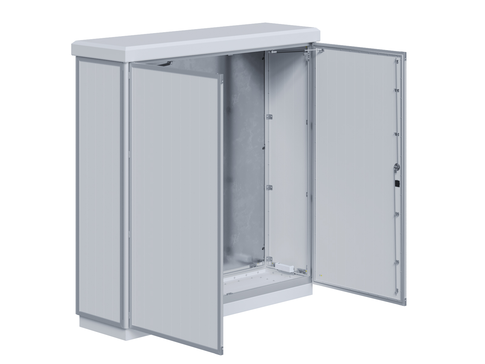 Outdoor-Schaltschrank aus doppelwandigen Aluminiumprofilen mit Schloß-Anschlagtür