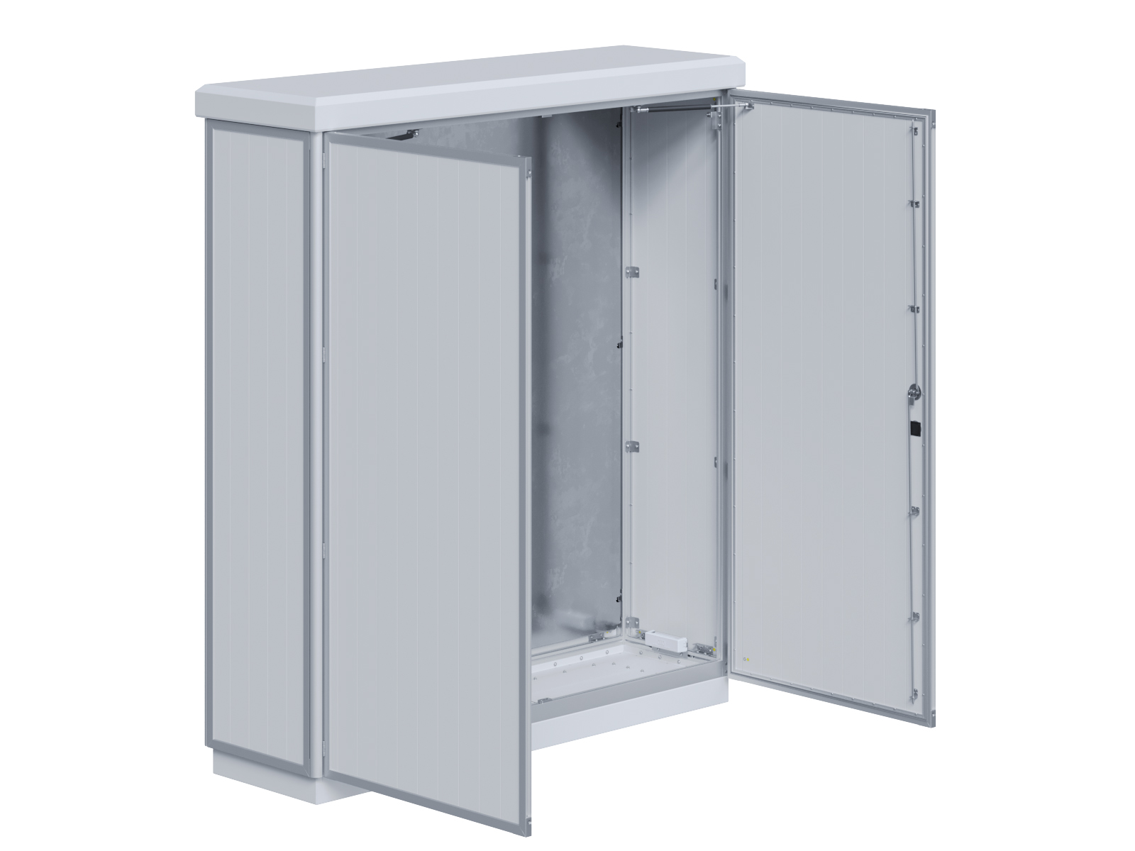 Outdoor-Schaltschrank aus doppelwandigen Aluminiumprofilen mit Schloß-Anschlagtür
