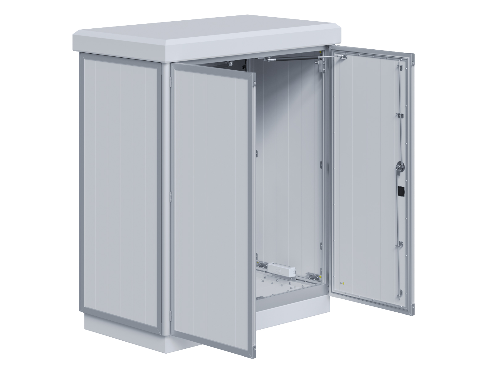 Outdoor-Schaltschrank aus doppelwandigen Aluminiumprofilen mit Schloß-Anschlagtür