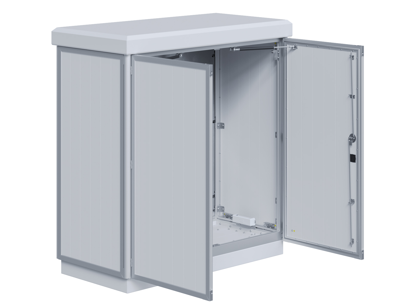 Outdoor-Schaltschrank aus doppelwandigen Aluminiumprofilen mit Schloß-Anschlagtür