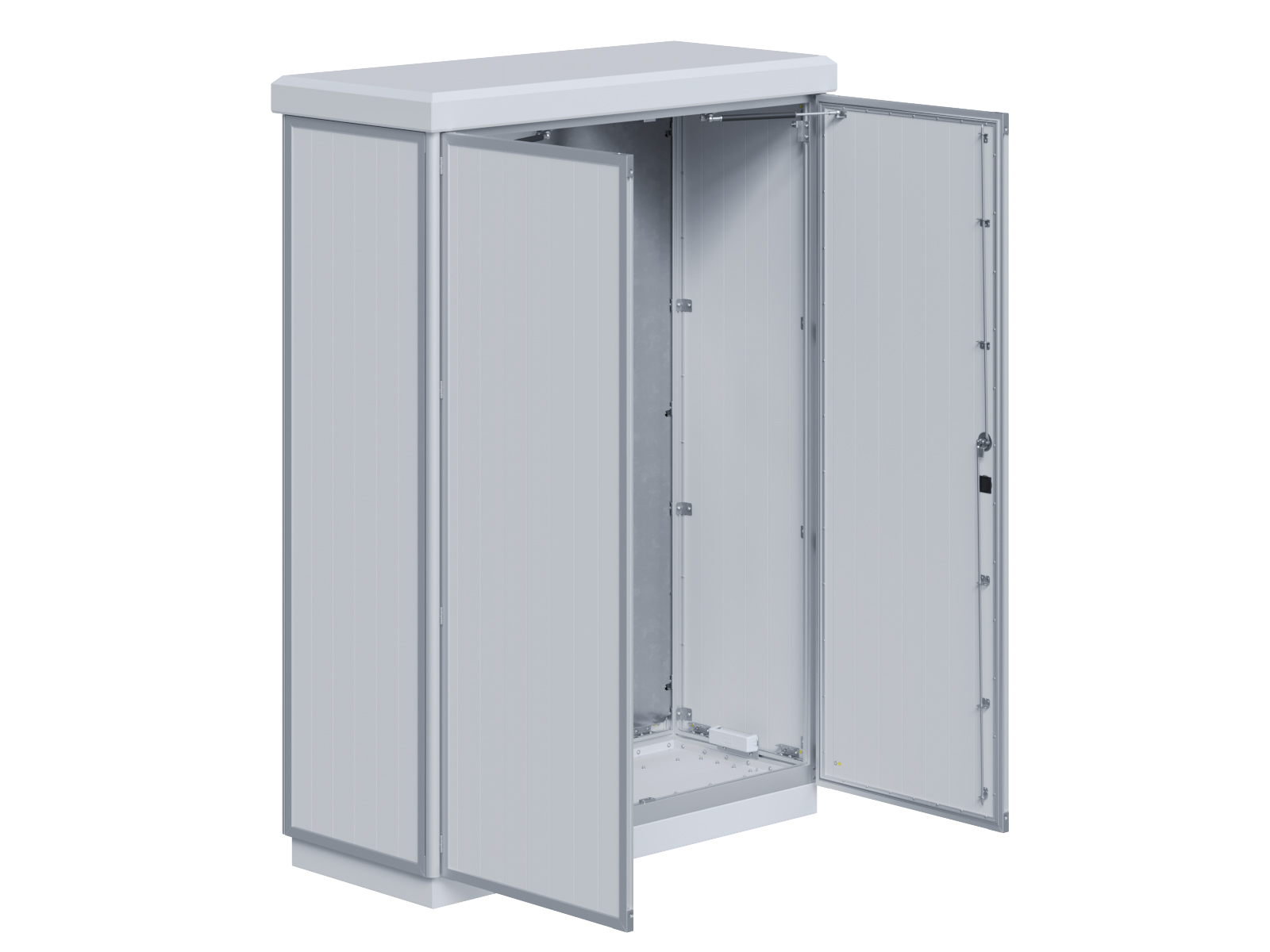 Outdoor-Schaltschrank aus doppelwandigen Aluminiumprofilen mit Schloß-Anschlagtür