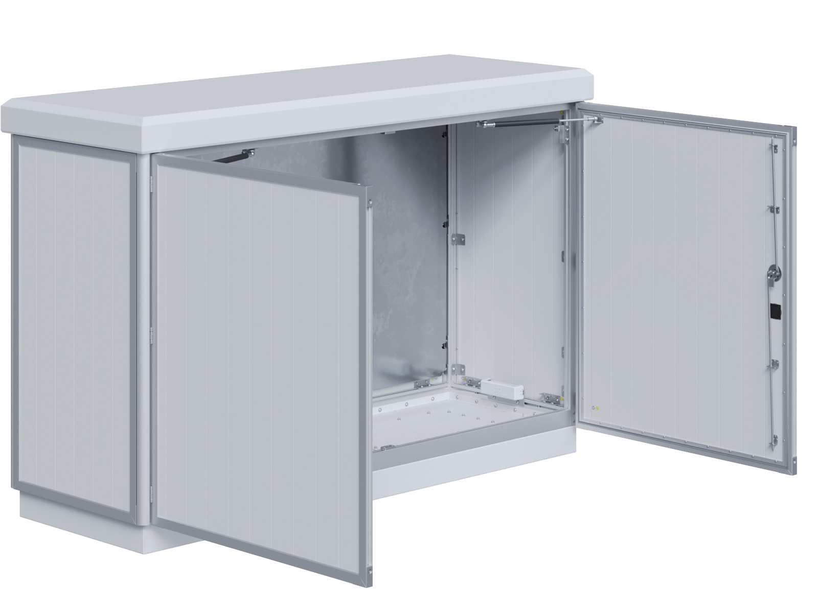 Outdoor-Schaltschrank aus doppelwandigen Aluminiumprofilen mit Schloß-Anschlagtür