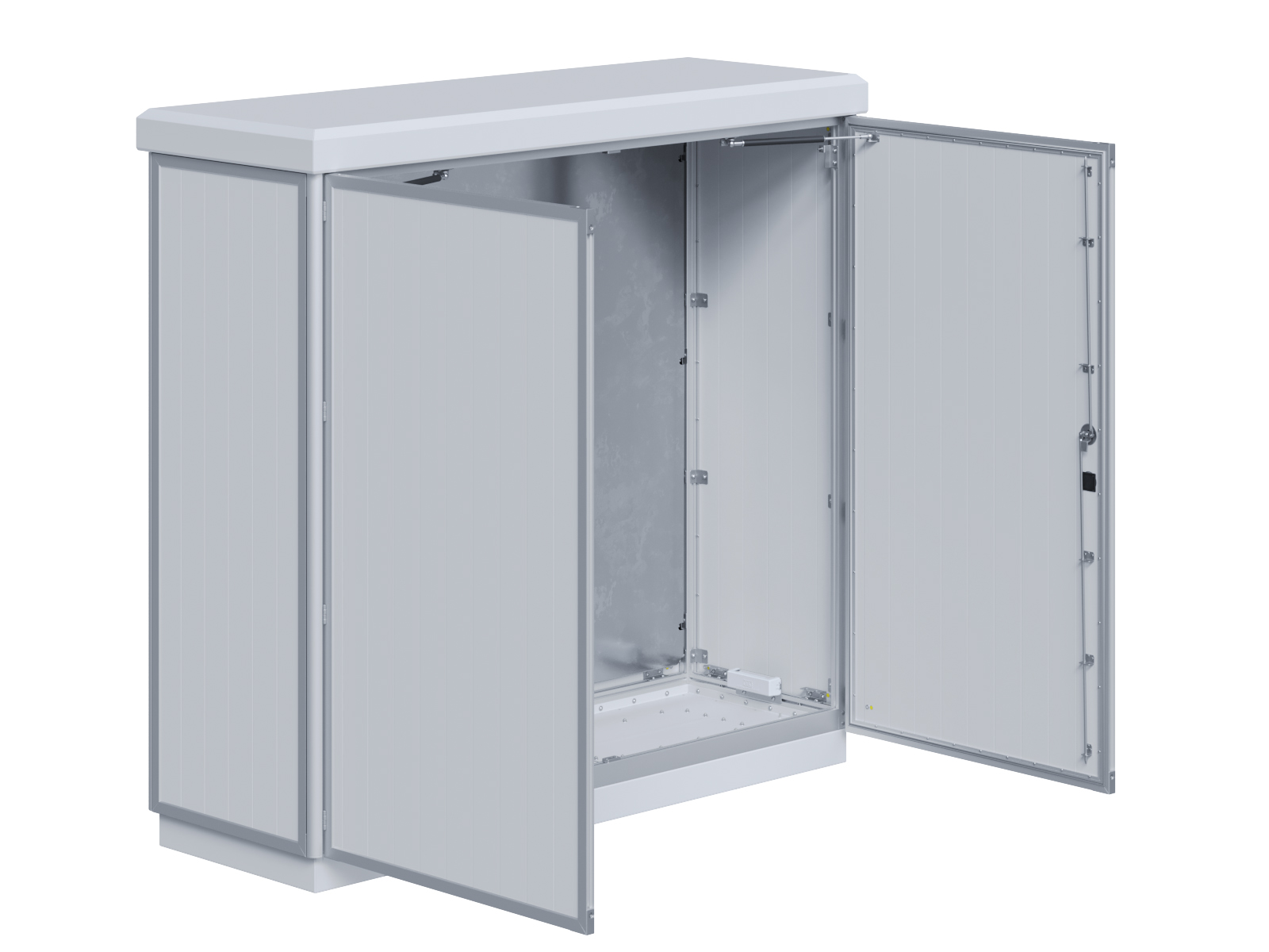 Outdoor-Schaltschrank aus doppelwandigen Aluminiumprofilen mit Schloß-Anschlagtür