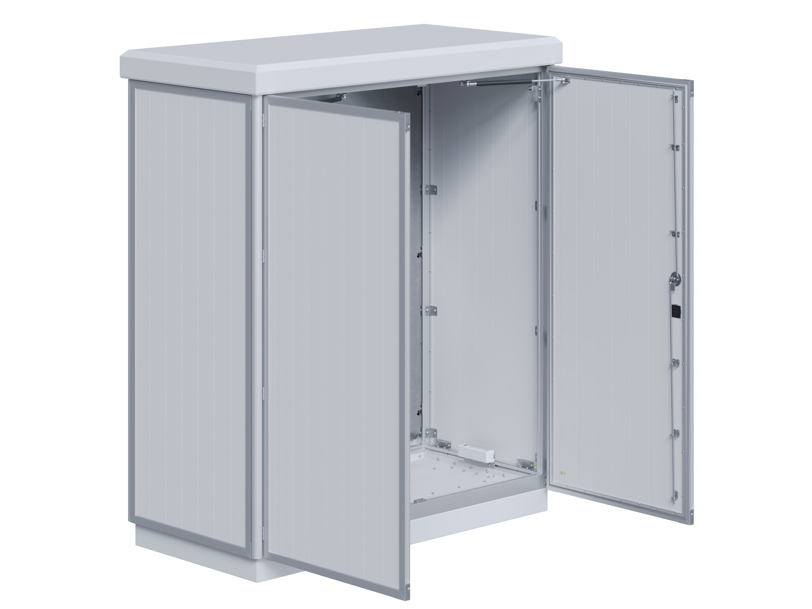 Outdoor-Schaltschrank aus doppelwandigen Aluminiumprofilen mit Schloß-Anschlagtür