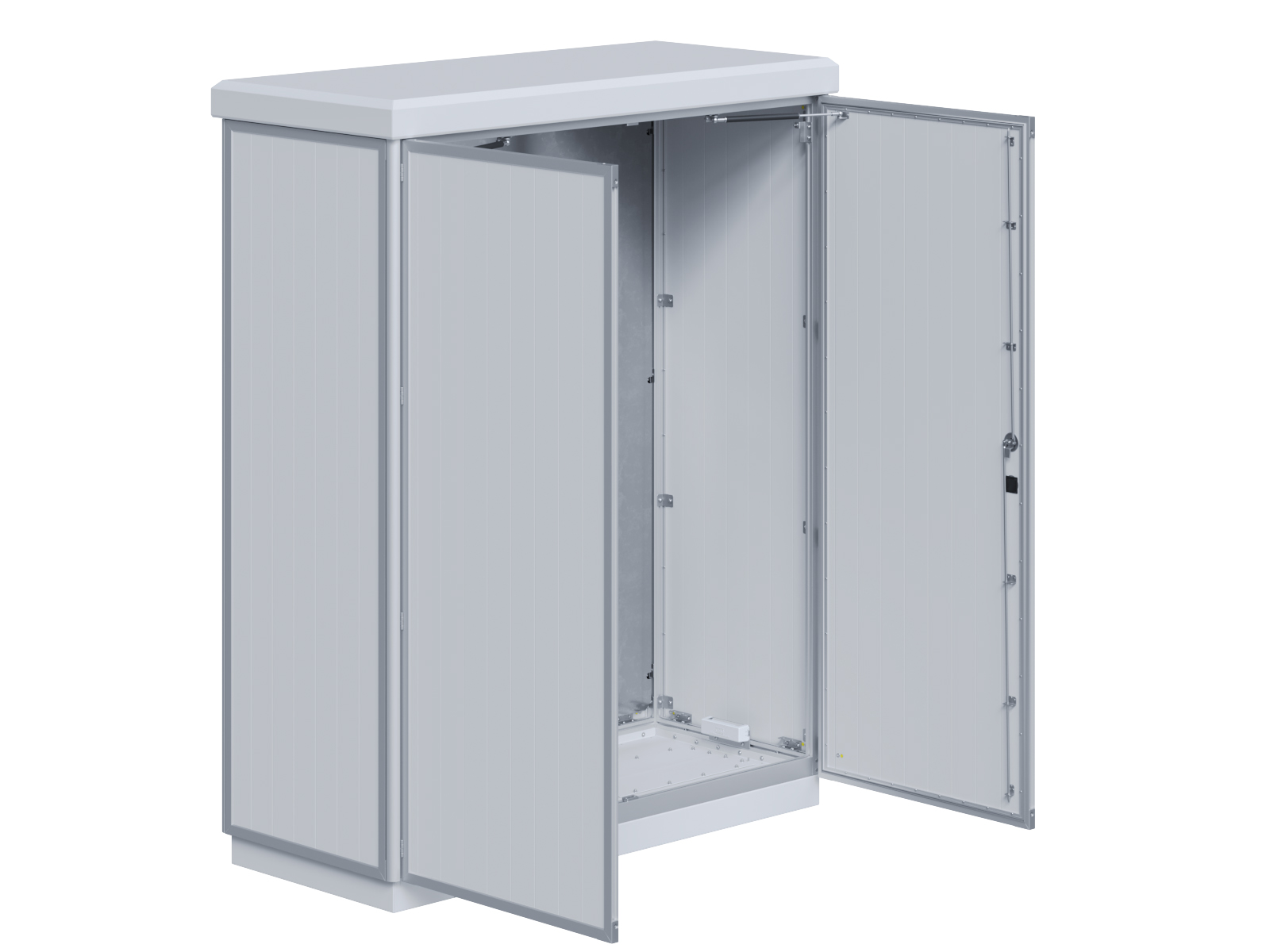 Outdoor-Schaltschrank aus doppelwandigen Aluminiumprofilen mit Schloß-Anschlagtür