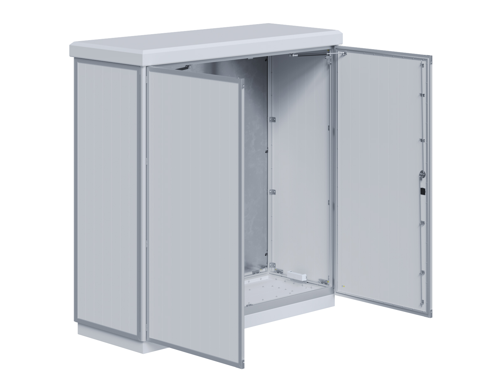Outdoor-Schaltschrank aus doppelwandigen Aluminiumprofilen mit Schloß-Anschlagtür