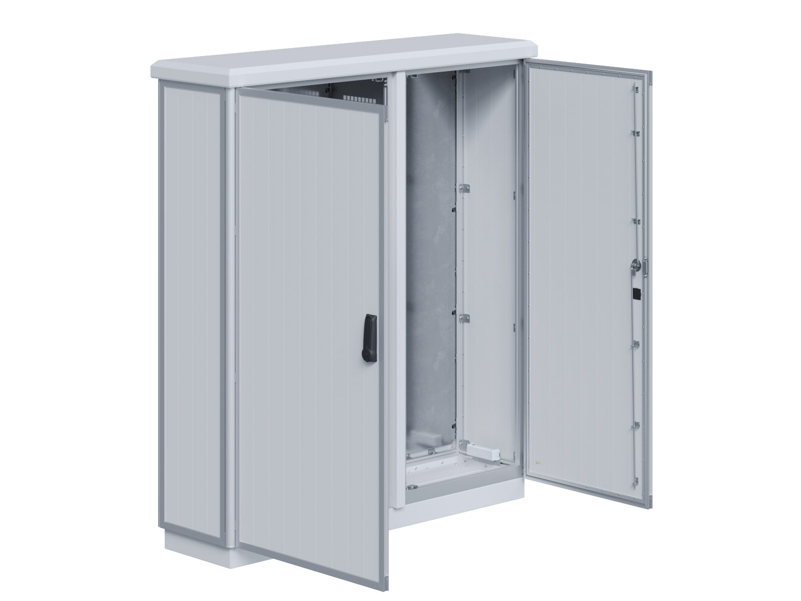 | Outdoor cabinet made of double-walled aluminum profiles with utility company (EVU) component | 11111441 | 1.200 mm | 1.600 mm | 500 mm | Details |