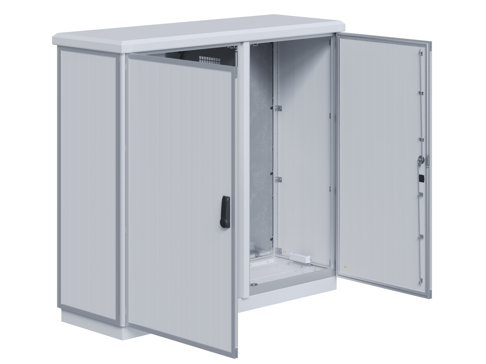 | Outdoor cabinet made of double-walled aluminum profiles with utility company (EVU) component | 11111441 | 1.200 mm | 1.600 mm | 500 mm | Details |
